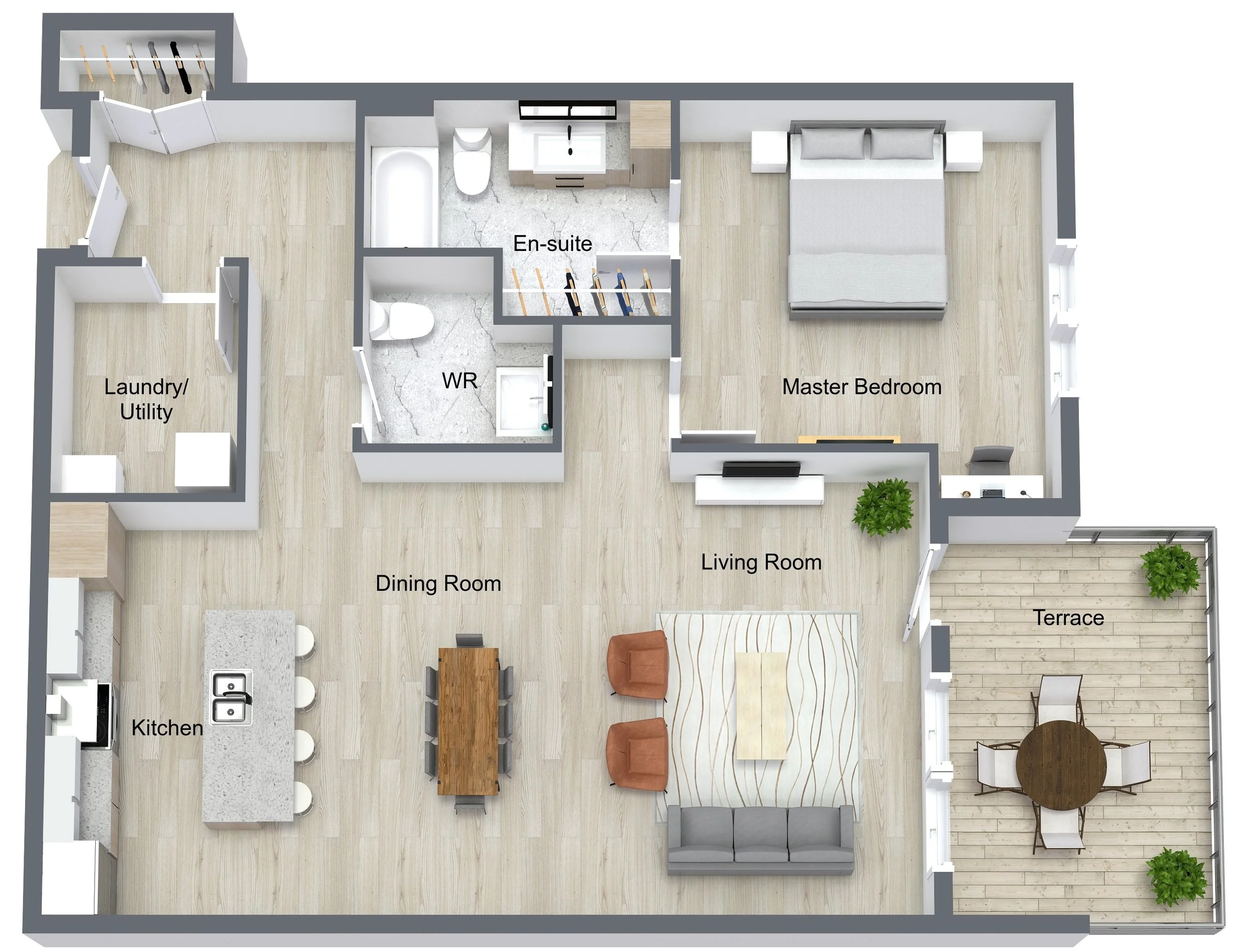 MODERN KITCHEN WITH ISLAND QUARTZ COUNTERTOP